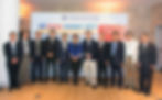 (图为江苏省产业技术研究院院长刘庆院长和科协华盛顿分会理事长、总会副会长、双创组组长薄智泉主持为一等奖获奖者梅哲颁奖及合影)